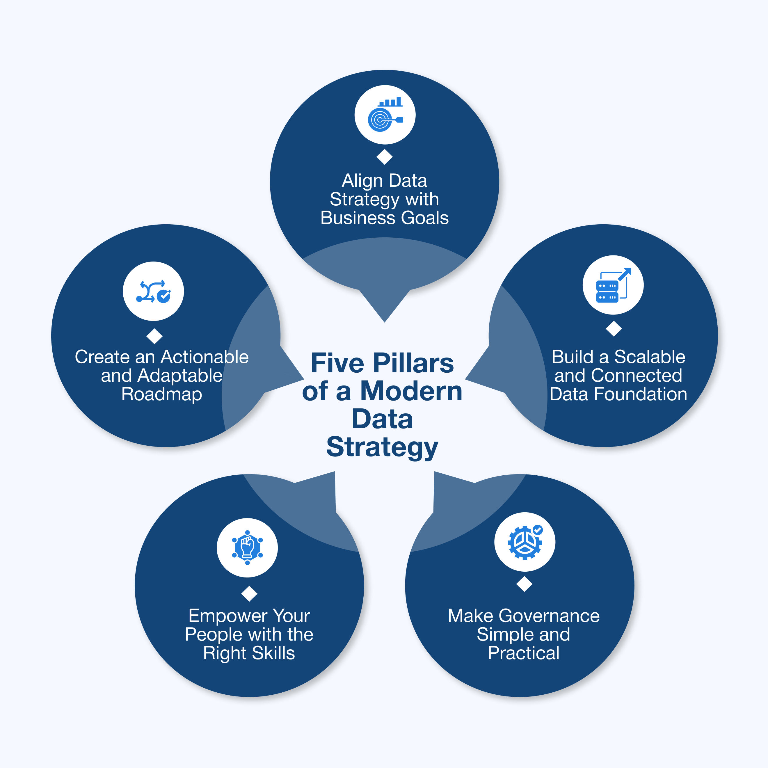 The Five Pillars of a Modern Data Strategy Every business wants to be data-driven, but not every business has a clear plan to get there. A strong data strategy turns raw information into real value, helping you make faster decisions, improve performance and prepare for what’s next.