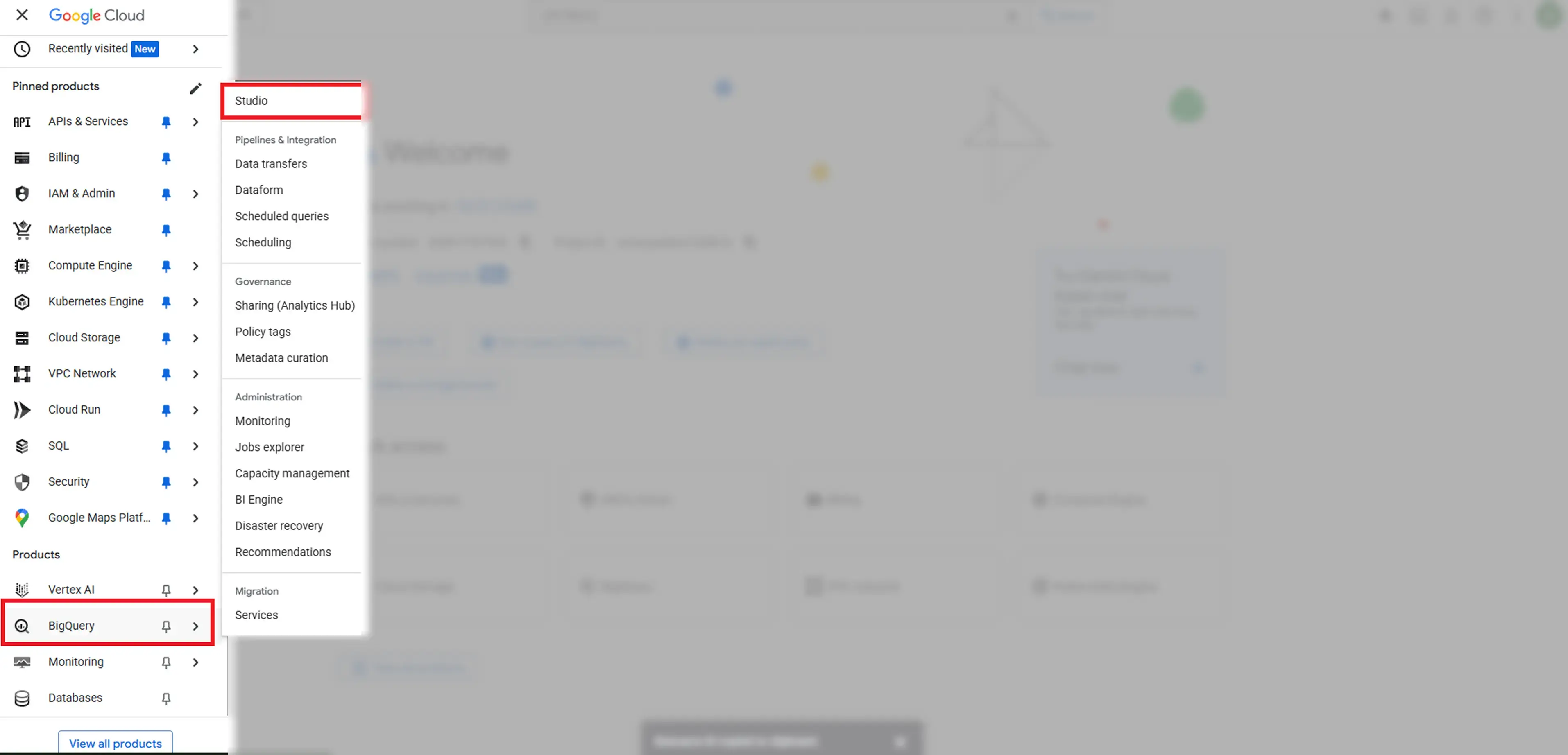 1. In the Cloud Console, go to Navigation menu → BigQuery.