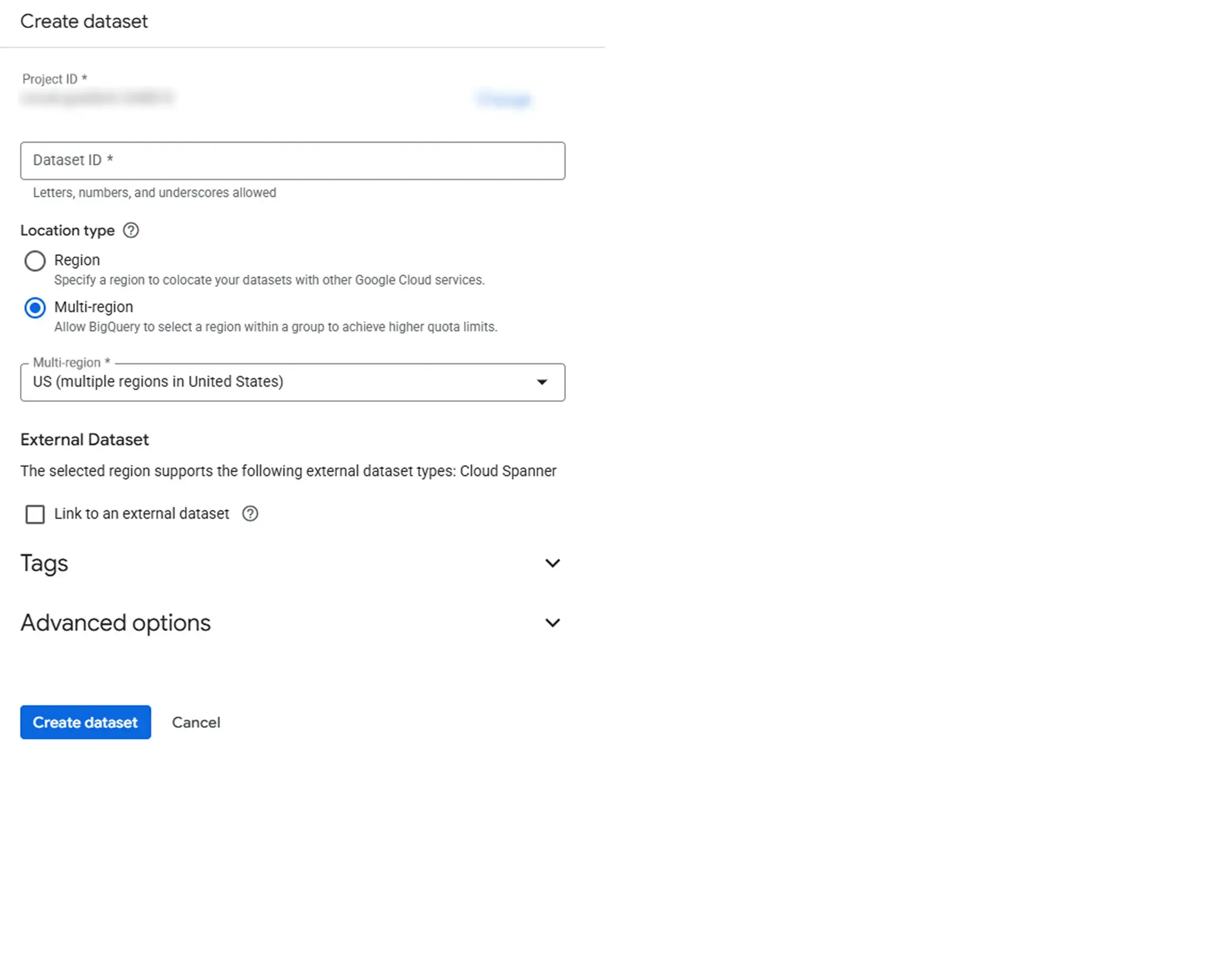 - Dataset ID: Use a descriptive name, e.g., analytics_<propertyid>