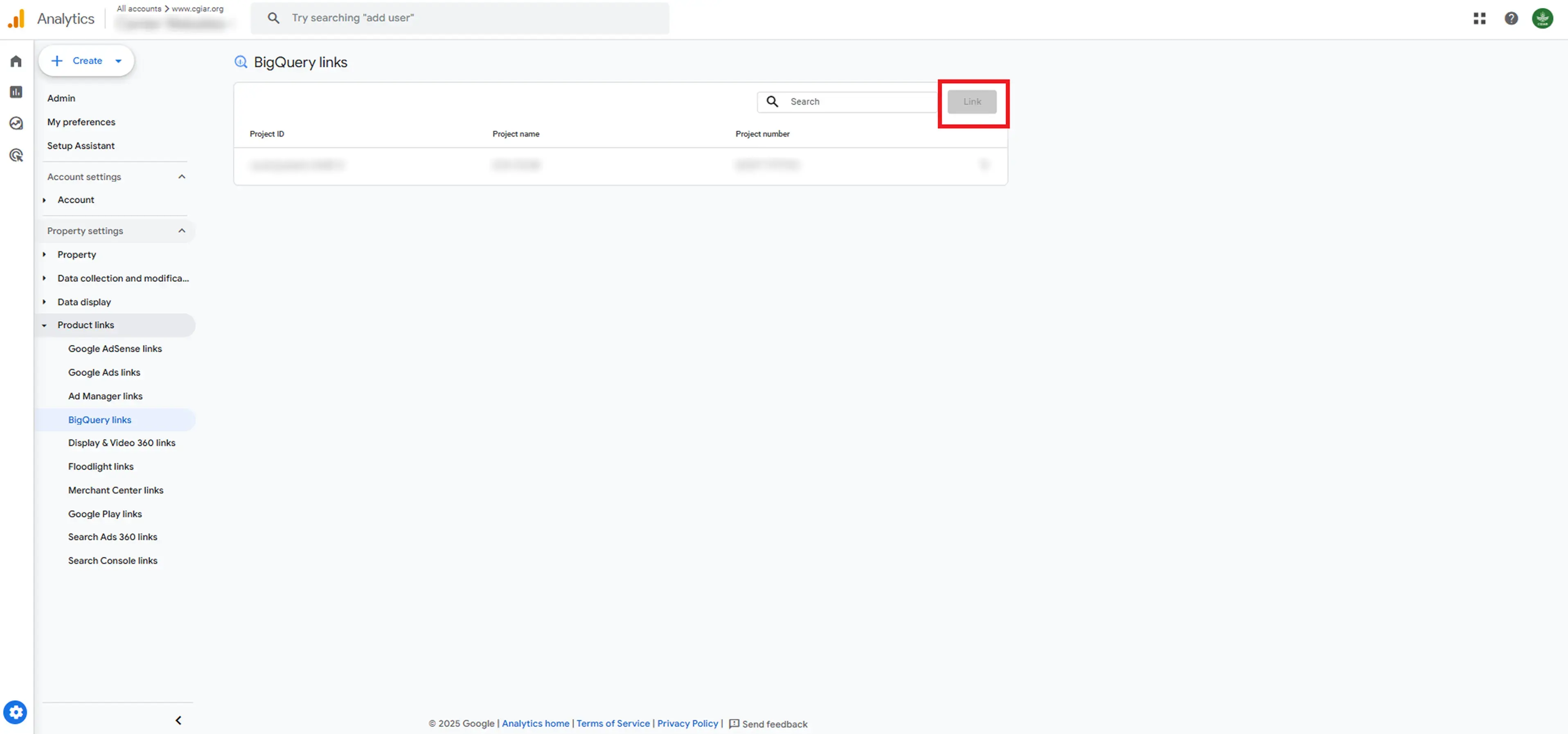 If you don’t see the dataset selection step during the linking process, check the IAM permissions on your GCP project. Your account must have the Editor role. In some cases (e.g., Firebase-backed properties), the linking flow may differ slightly.